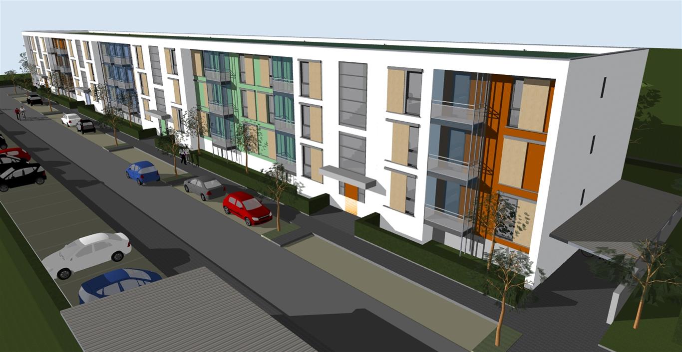 2020 - Im neuen Siedlungsgebiet an der Burgkirchener Straße wurde Baurecht erteilt. In einem 108 Meter langen Gebäudekomplex sollen rund 42 Mietwohnungen entstehen, davon drei rollstuhlgerechte Wohneinheiten. Im Frühjahr 2020 können die Bauarbeiten beginnen. Ende 2021 soll die Wohnanlage bezugsfertig sein. Die Gesamtkosten werden sich inklusive Grundstück auf ca. 12 Mio. Euro summieren. Die Regierung wird diese Maßnahme mit ca. vier Millionen Euro bezuschussen und außerdem die Stadt mit einem zinslosen Darlehen unterstützen. (Visualisierung: Dillinger)
