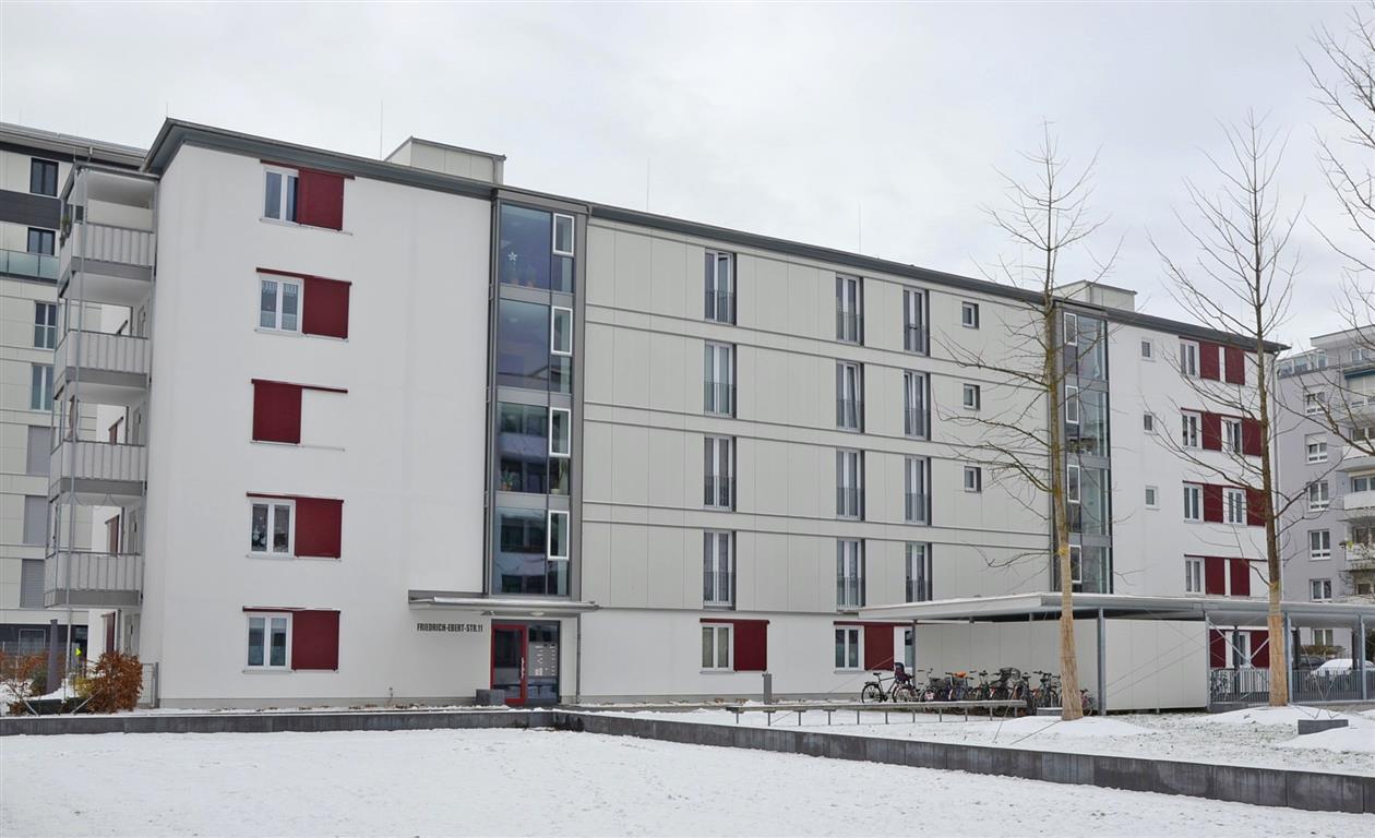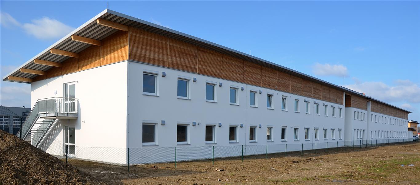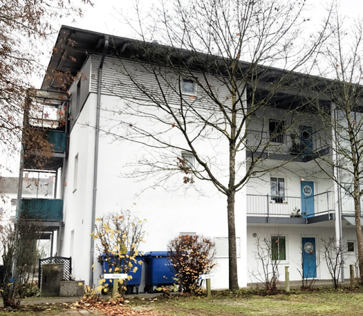 2016 - Im Gewerbegebiet Lindach entstand von Juli 2015 bis März 2016 die Gemeinschaftsunterkunft für Asylbewerber. Nach der Fertigstellung ging das Gebäude in das Eigentum der städtischen Wohnbaugesellschaft BuWoG über, Vermietung an die Regierung von Oberbayern zur Unterbringung von Asylbewerbern. Der Neubau bietet in 88 Wohneinheiten Platz für rund 160 Bewohner. Die Miete deckt voll die Aufwendungen der BuWoG. (Foto: KommExpert)