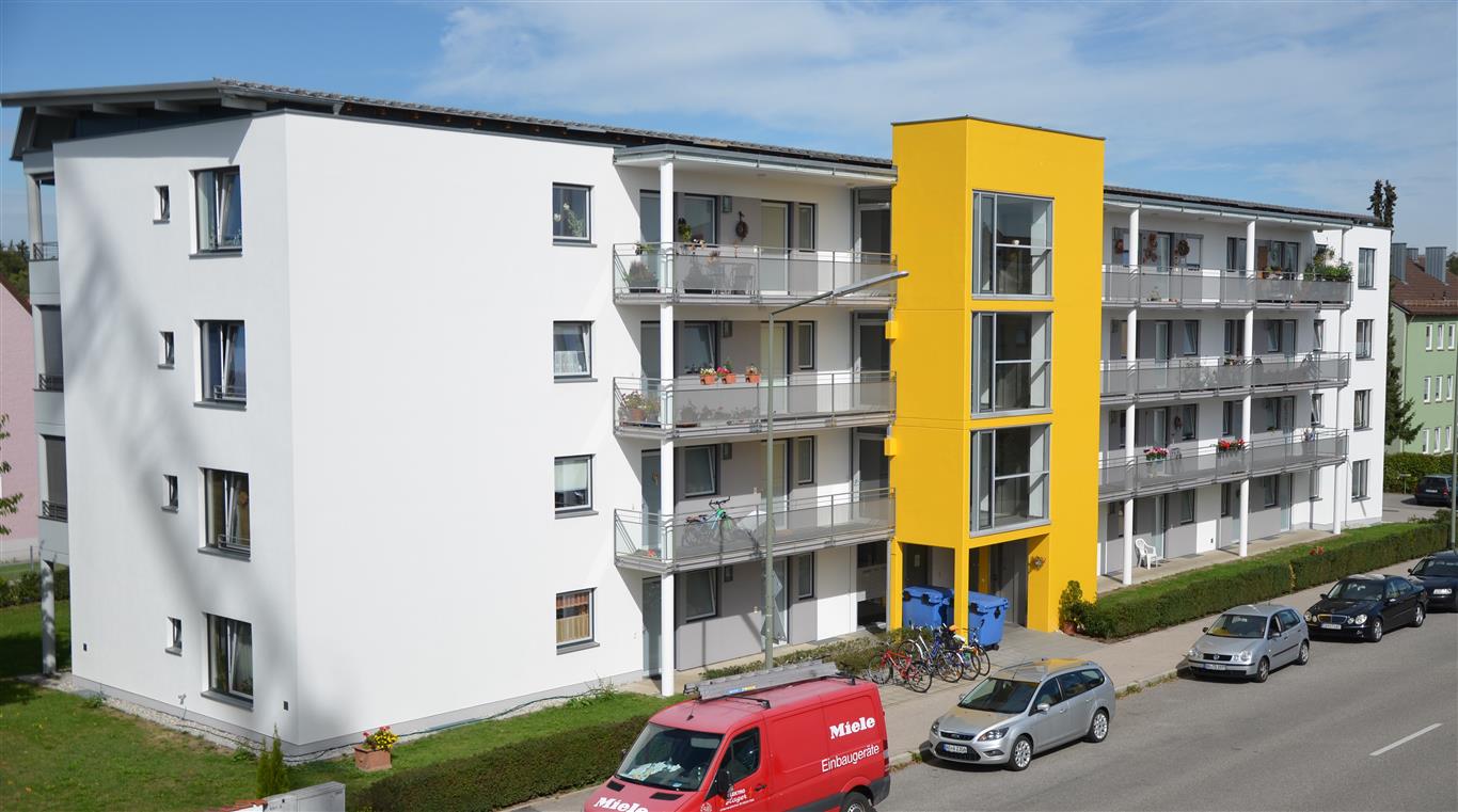 2014 - Fast acht Millionen Euro in Summe wurden für Neubauten und für Bestandsmodernisierungen aufgewendet. So z. B. die Maßnahmen in der Vollmarstraße sowie in der Johannes-Hess-Straße. Bei Ersteren wurden unter anderem Außenaufzüge angebaut sowie Fassaden und elektrische Zuleitungen erneuert. In der Johannes-Hess-Straße wurden Außenfassade und Balkone für rund 350.000 Euro erneuert (siehe Bild). (Foto: KommExpert)